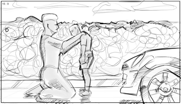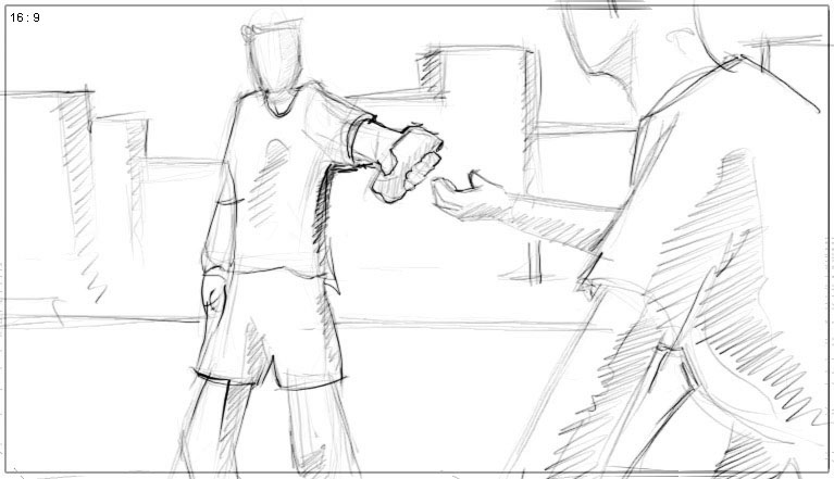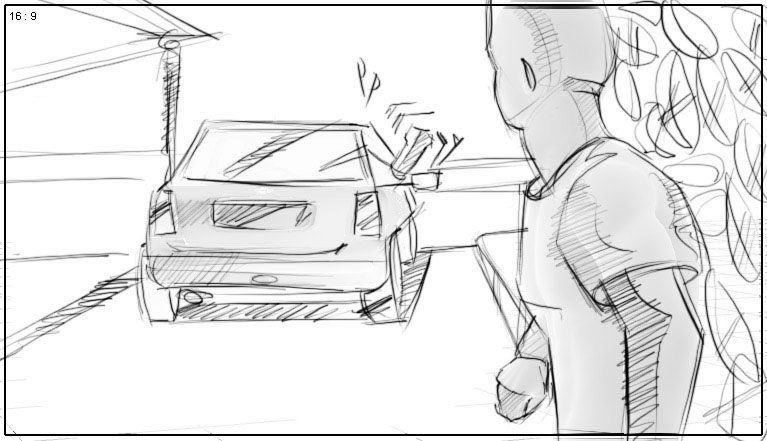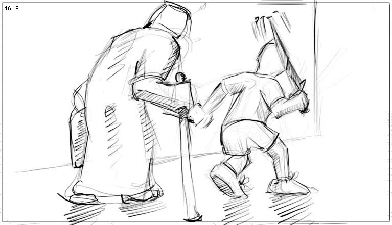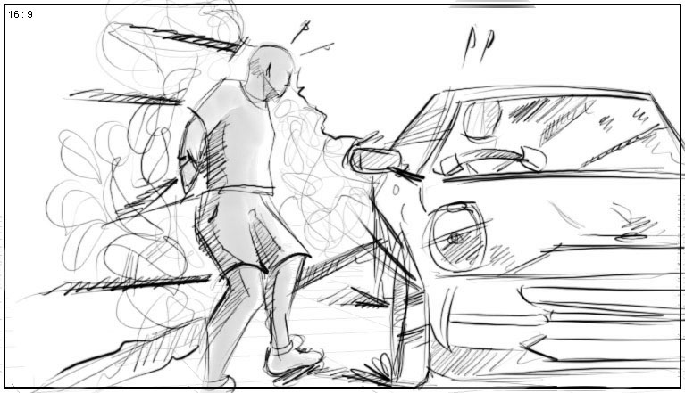 he runs away –camera follows from