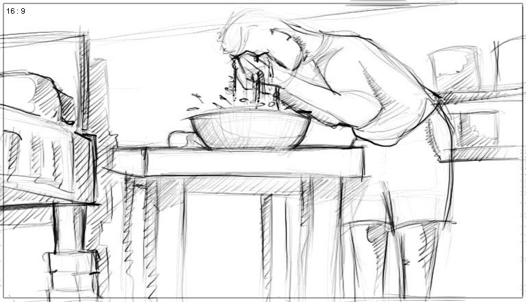 Thando washing hands and face before