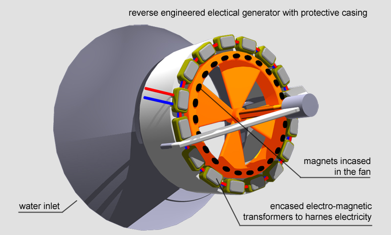 electro-magnetic generators into the casing -thereby avoiding erosion